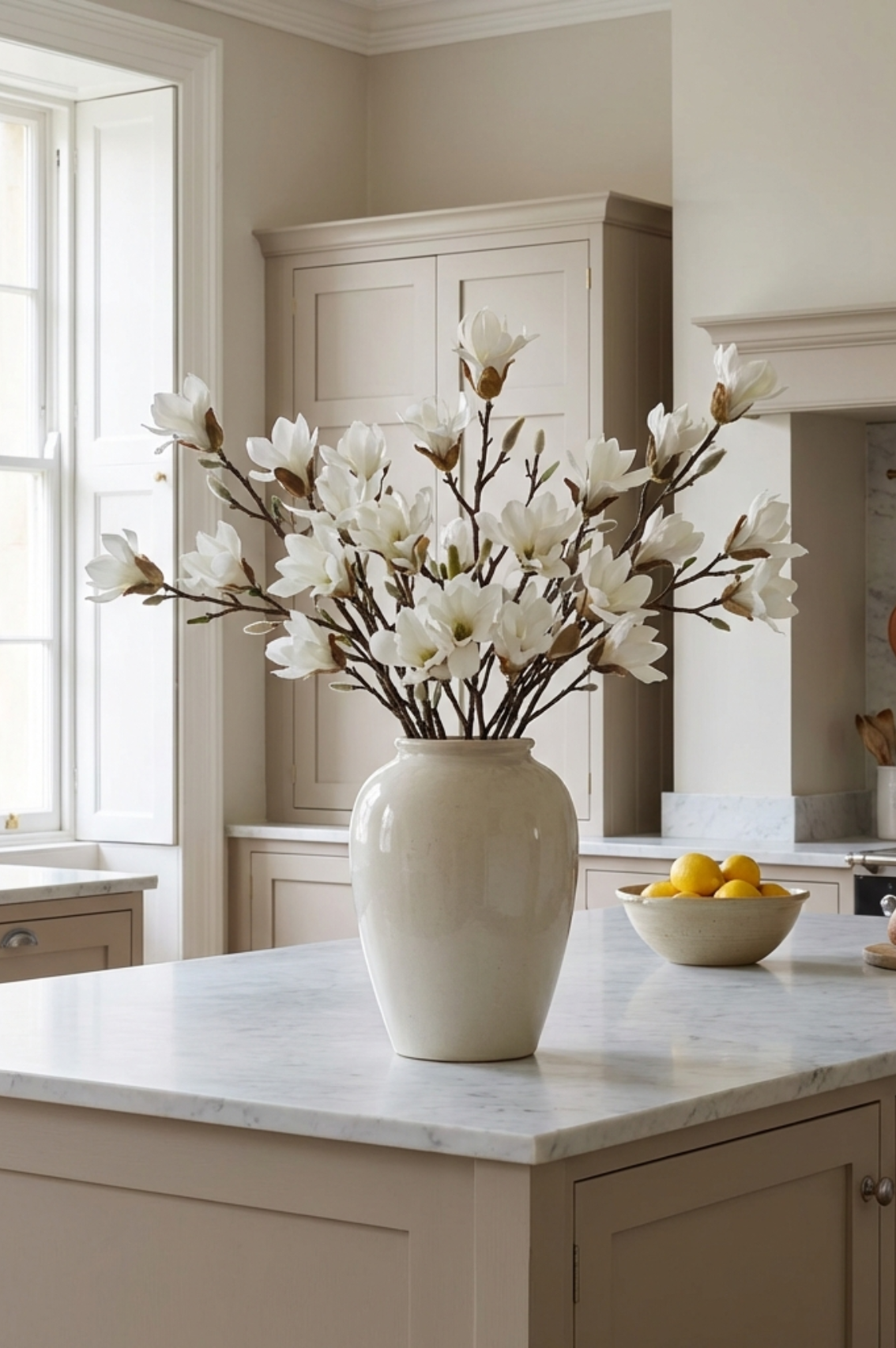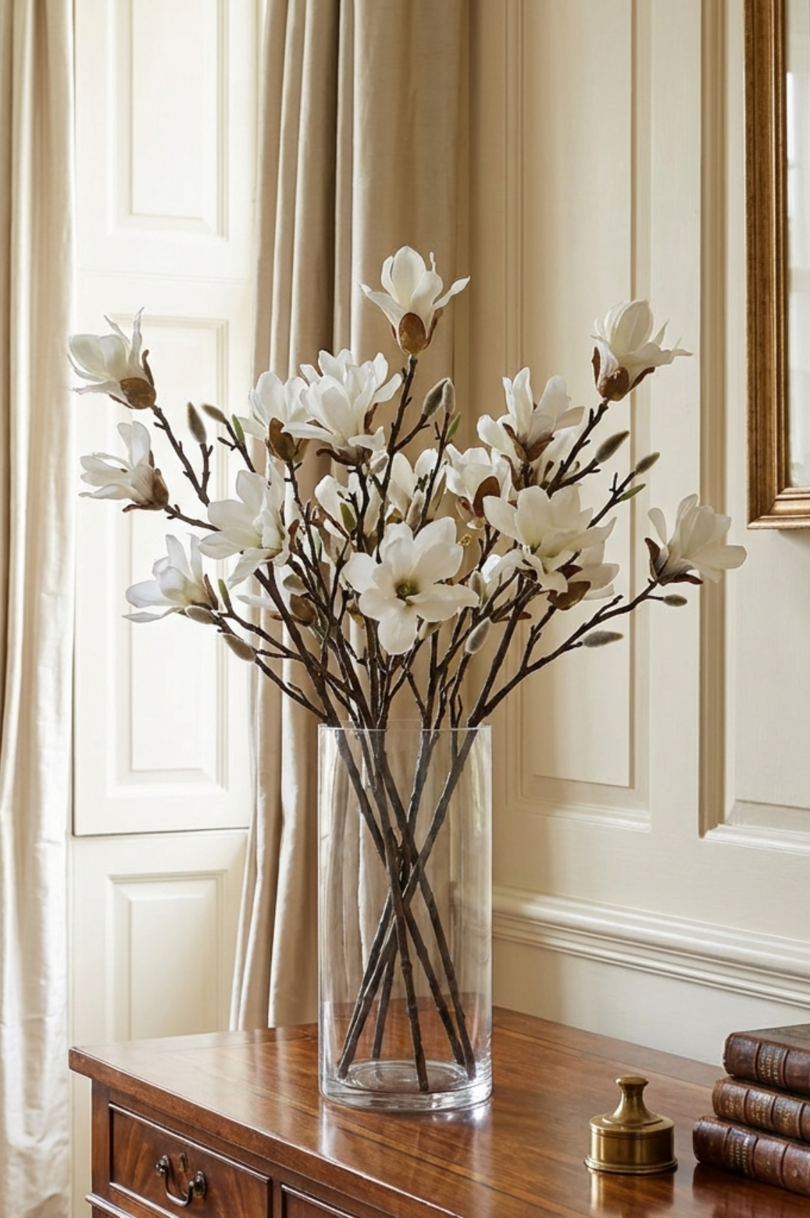 Featuring delicate petal details and graceful proportions, this magnolia spray adds a breath of fresh style with effortless beauty. The flexible stem lets you arrange it just the way you like, in a tall vase on its own or paired with softer greenery for a layered look, and it stays pristine year-round without watering or wilting.