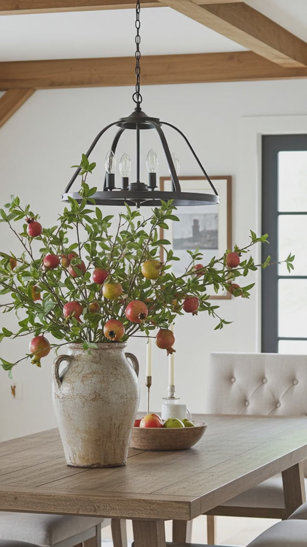 Our Faux Pomegranate Branch is a real statement stem. With its deep green leaves and lifelike fruit, it brings a sense of abundance and warmth to your home — the kind of piece that instantly feels both rustic and luxurious.