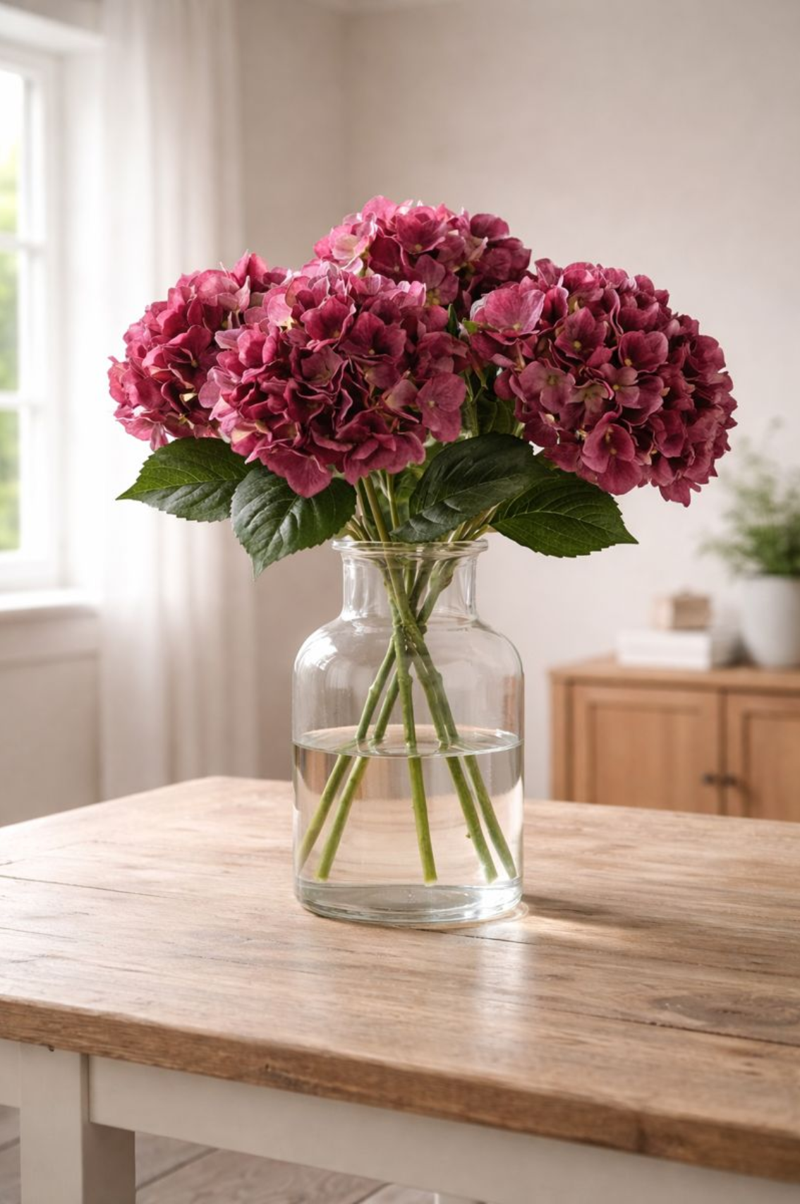 Our Faux Burgundy Hydrangea Stems are great for making a space feel a bit warmer and more put together, without any effort. The deep burgundy colour is rich but still really easy to live with, and the full heads give that lovely, soft hydrangea look.