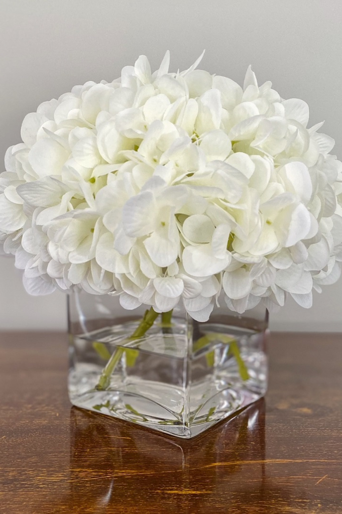 Our faux water Annabelle arrangement is all about that clean, classic look—with realistic stems set in faux water for that fresh-from-the-florist feel. It’s elegant without being too formal and works beautifully in just about any room.