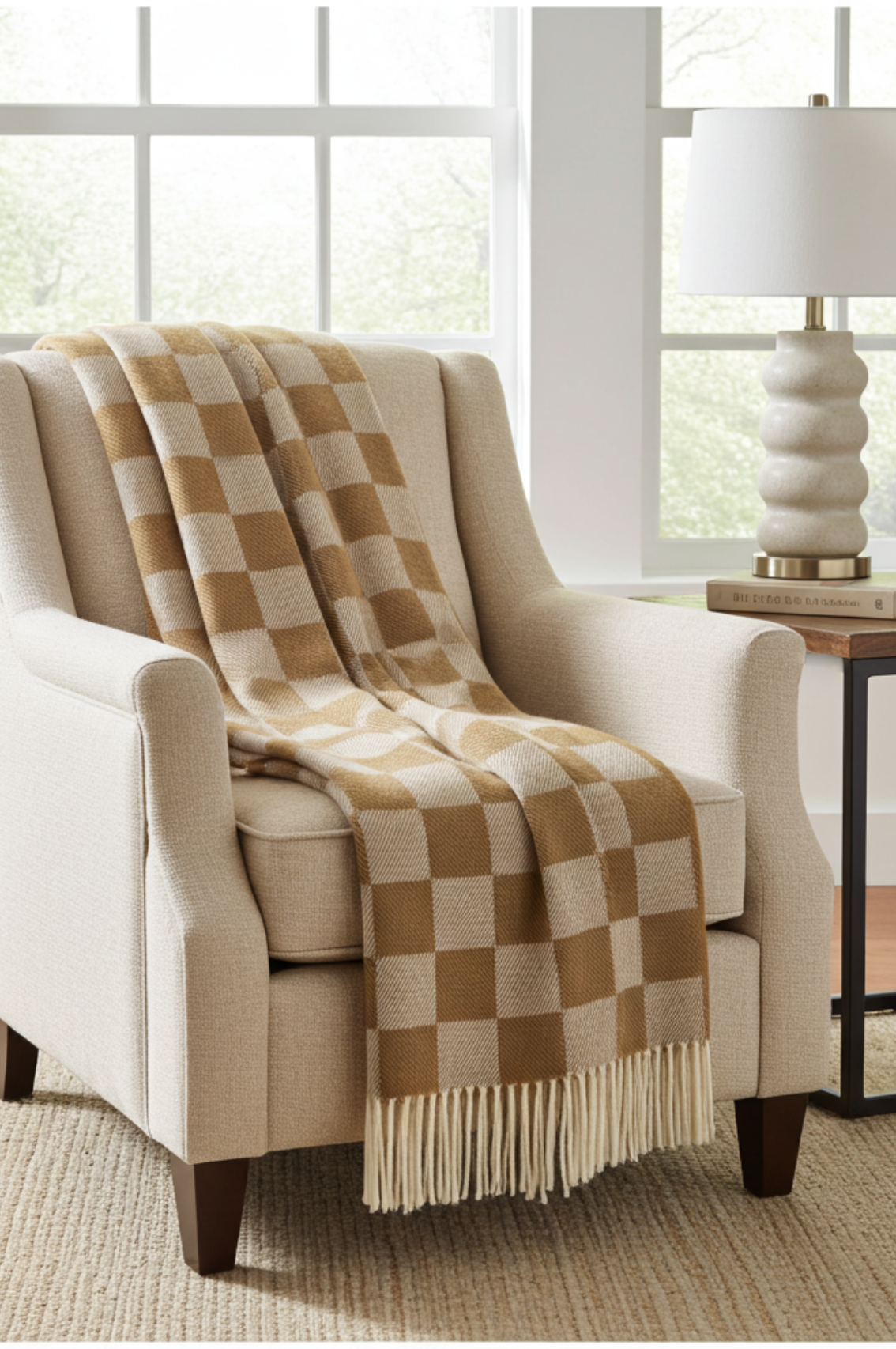 Supersoft Herringbone Lambswool Throw Caramel Check
