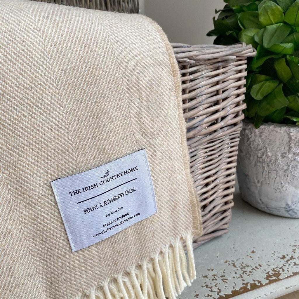 Supersoft Herringbone Lambswool Throw Soft Beige