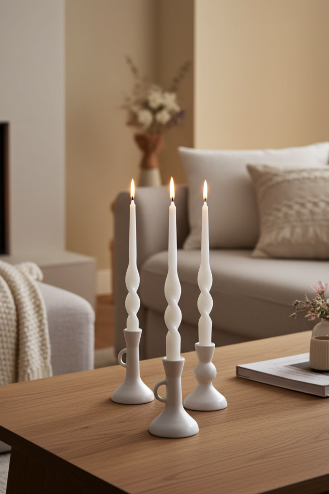 MÆGEN Twist Taper Candles - 3 Pack - Ice White