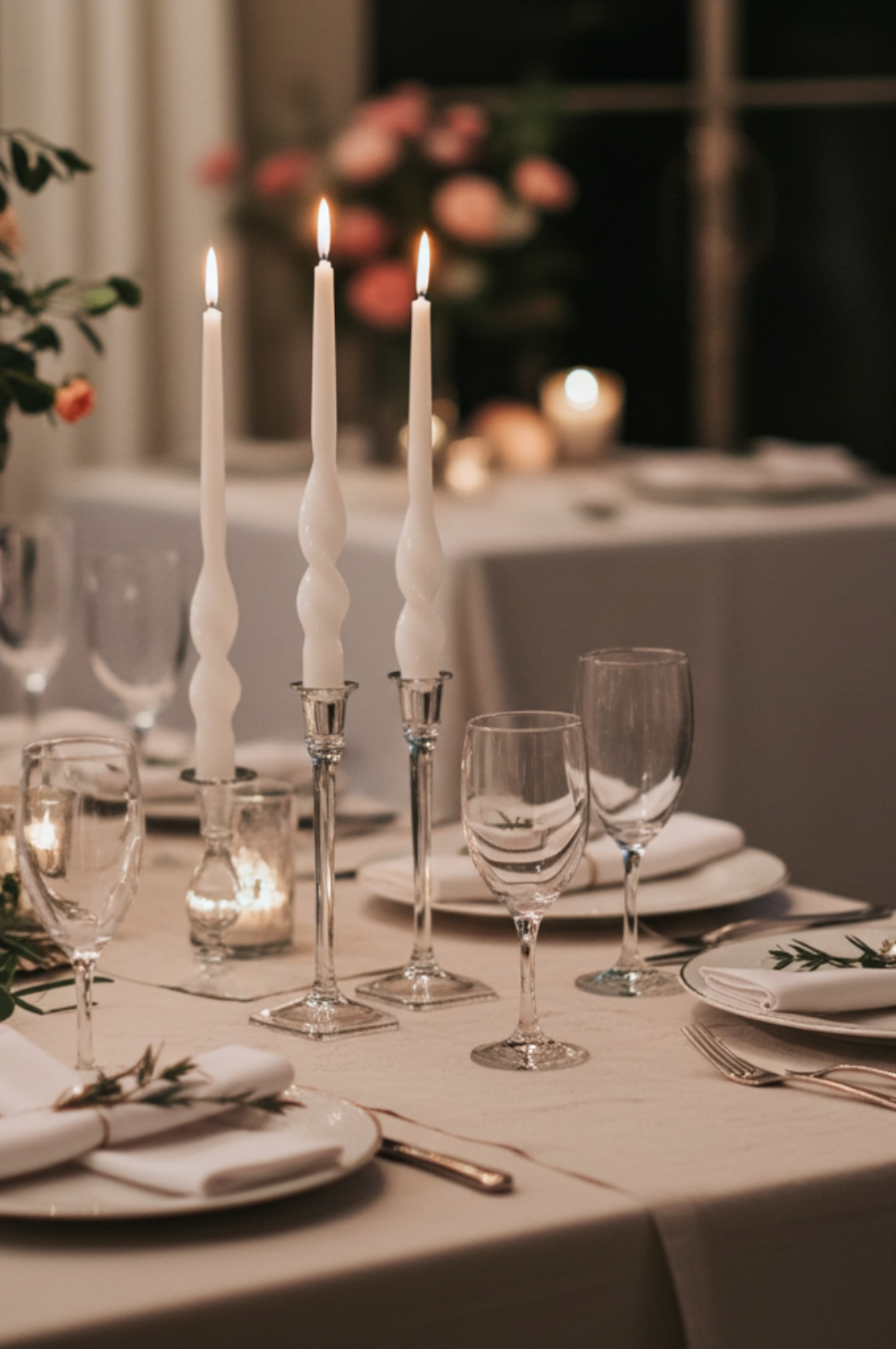 When lighting taper candles, use a holder and place on a heatproof surface. Keep away from children, pets, draughts, and flammable materials. Never leave burning candles unattended. Extinguish candle before it reaches the end. Leave at least a 8cm gap between burning taper candles.