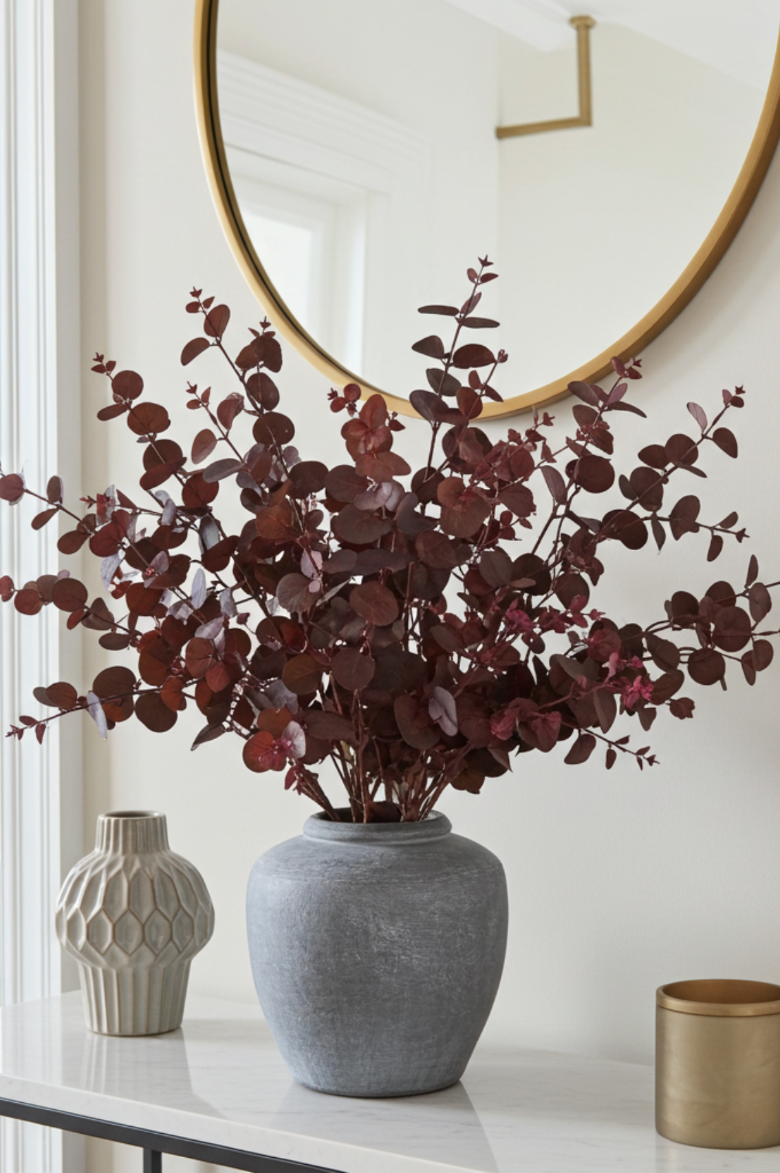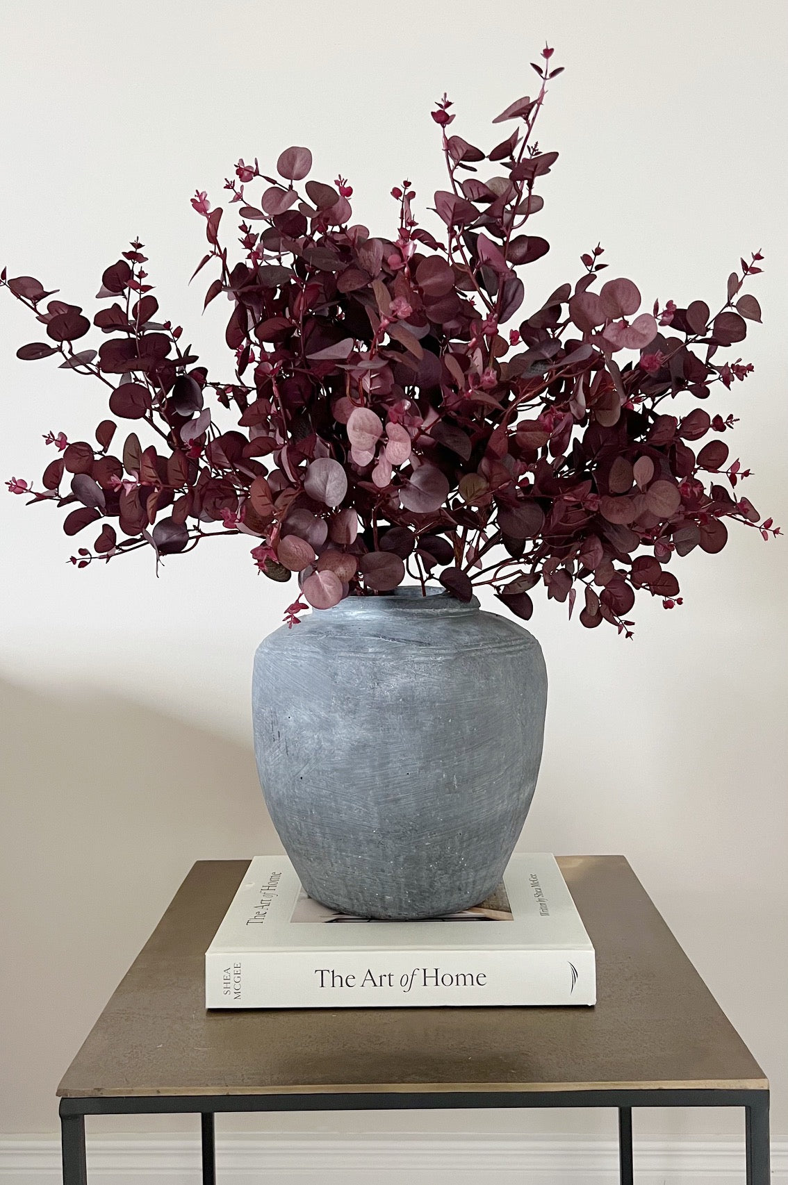 Our Faux Burgundy Eucalyptus Spray is perfect for adding a little depth and warmth to your arrangements. The rich, dusky tones feel lovely and autumnal, but it’s one of those stems that works beautifully all year round. Style a few on their own in a textured vase for something simple, or mix them into your favourite bouquet to ground softer tones.