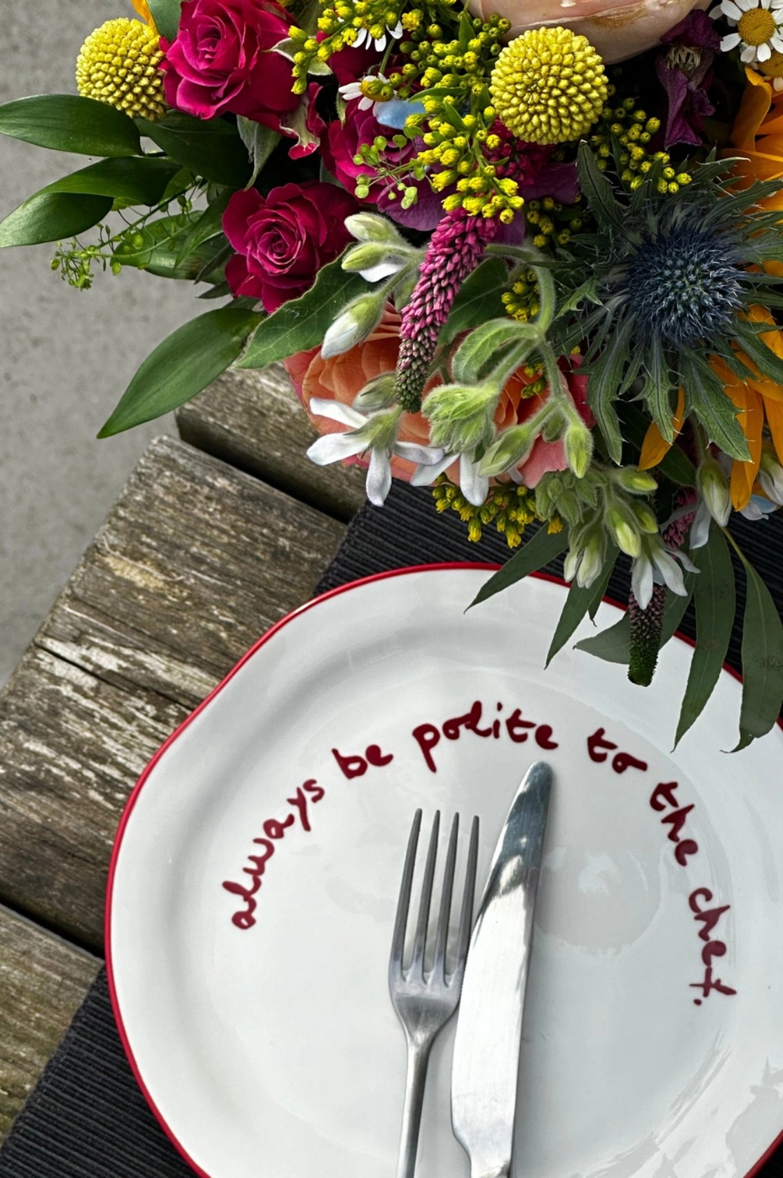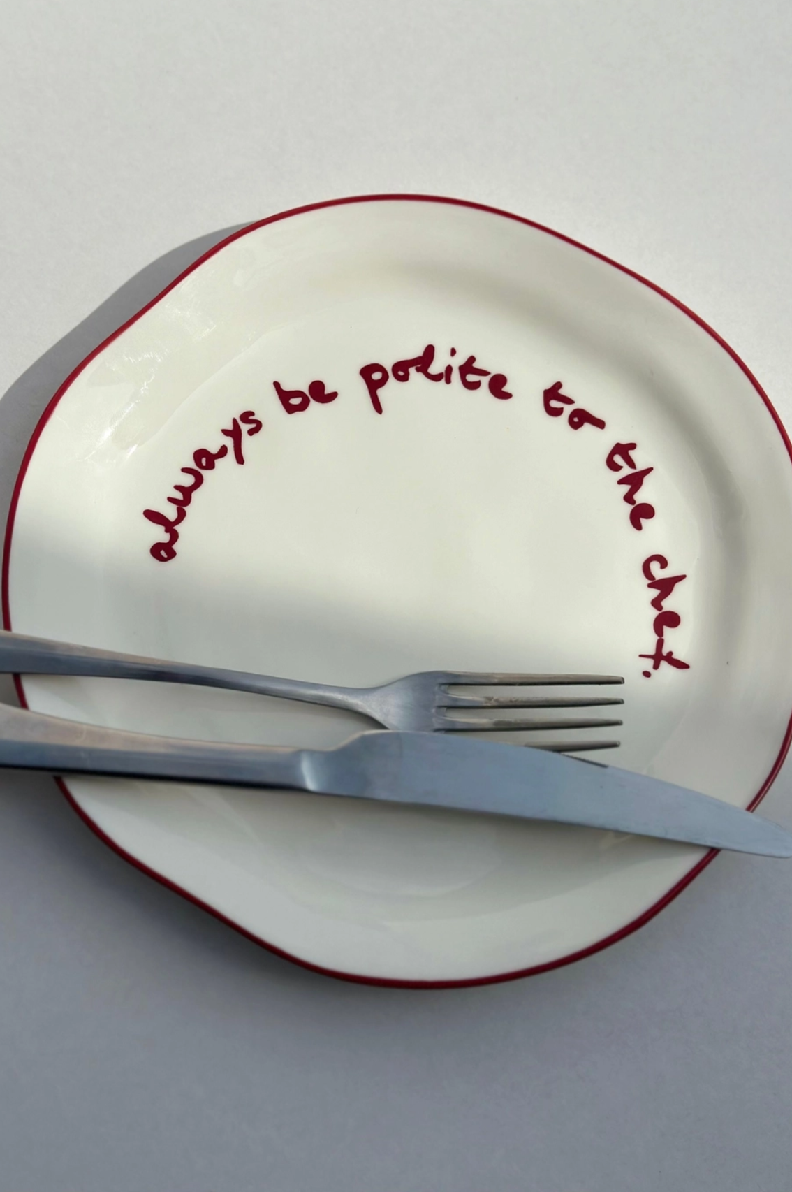 Statement Plates – Designed to Impress 'always be polite to the chef.' Make every meal a conversation starter with our Statement Lunch Plates, crafted from premium stoneware and adorned with bold slogans.
