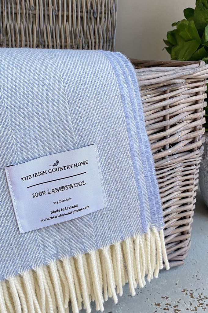 Supersoft Herringbone Lambswool Throw Ice Blue