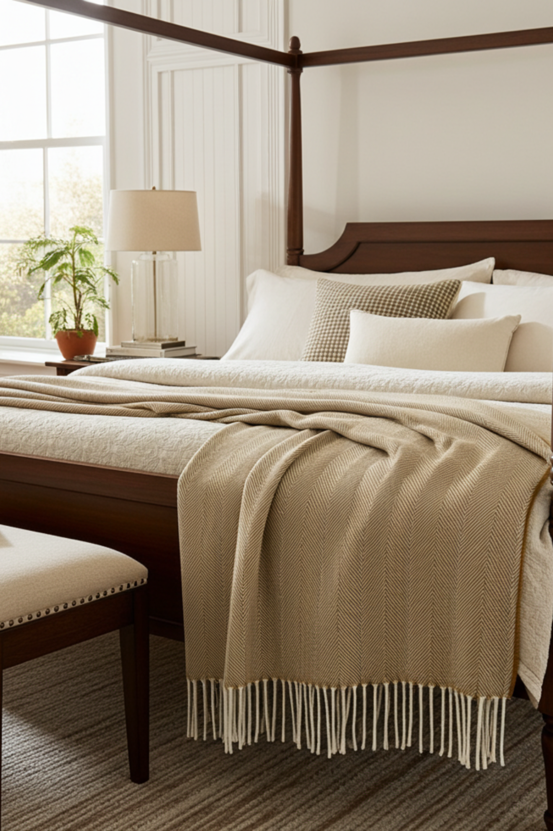 Made from the finest merino lambswool, this super soft throw is incredibly soft to the touch, and ideal for people with sensitive skin. It is perfect for keeping you warm and cosy during the winter. The classic herringbone weave adds instant elegance and charm and will look beautiful draped over a sofa or armchair.