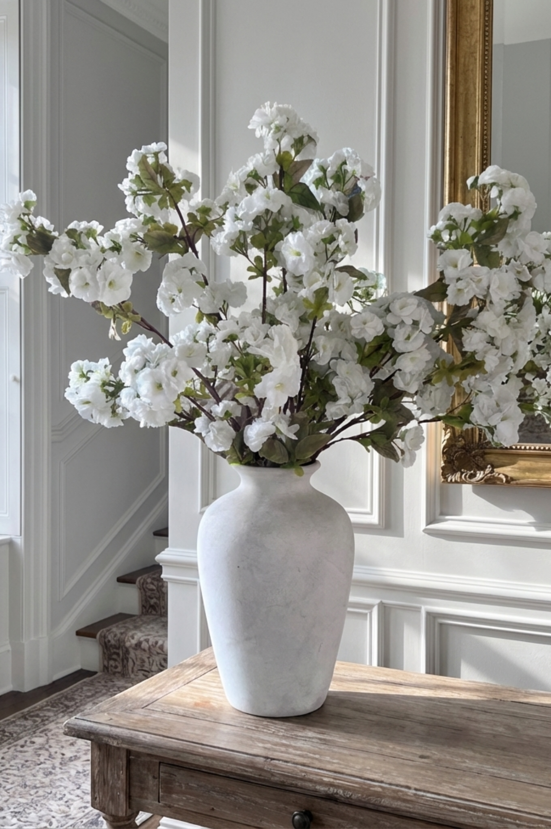 Pop a few stems in a tall, narrow vase for an elegant, minimal look, or mix them with soft pinks and greens for a full spring-inspired display. I love styling them on a console or dining table—perfect for adding a bit of height and softness.