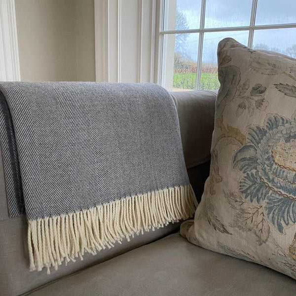 Luxury Supersoft Herringbone Lambswool Throw Grey Sold out