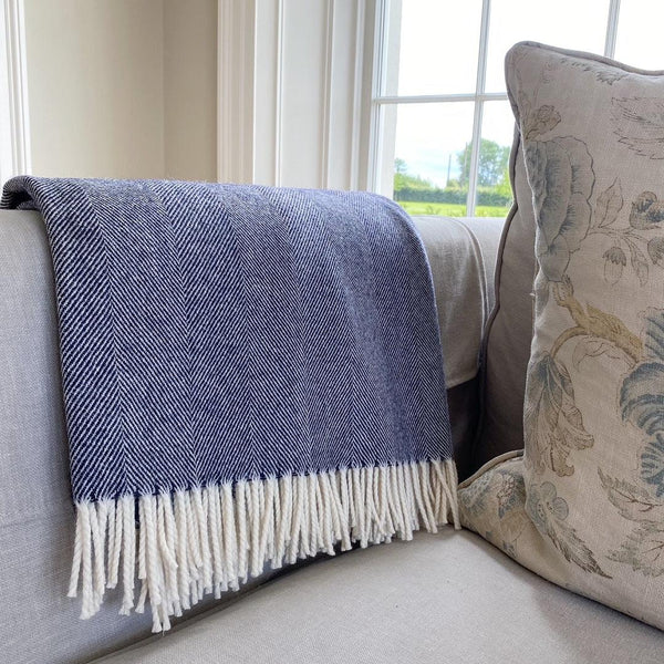 Supersoft Herringbone Lambswool Throw Ice Blue