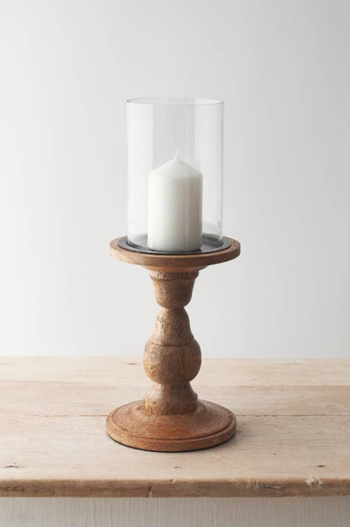 Simple and elegant, this glass pillar candle holder with its natural wooden base is a piece that works beautifully in any room. The clear glass keeps the look light and refined, while the wood brings warmth and an organic feel. It is ideal for creating that soft, glowing atmosphere at home all year round.