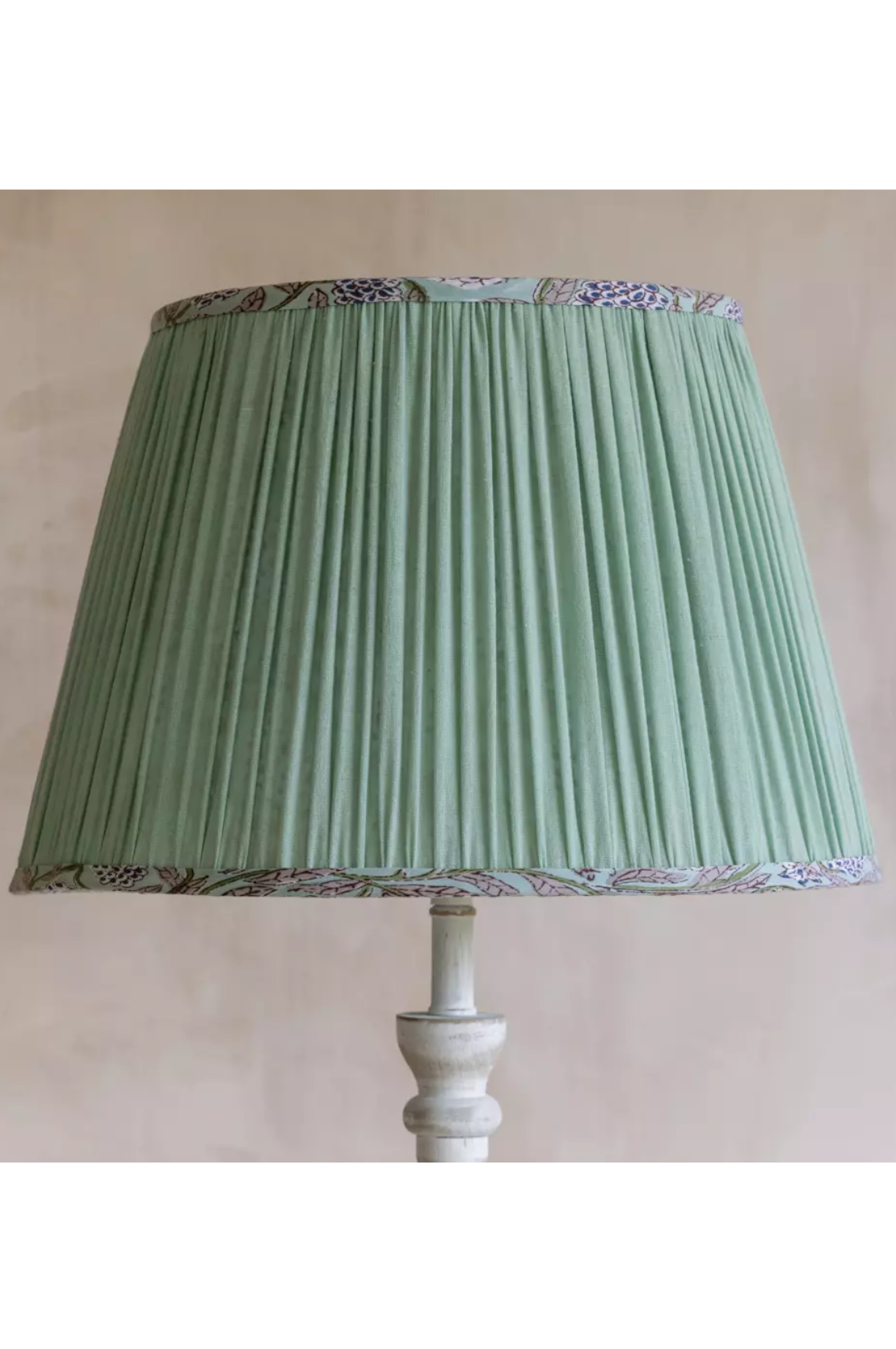 Fresh, soft and full of character — this 35cm peppermint lampshade is such a lovely way to lift a room. The gentle green tone feels calm and timeless, while the blockprint trim adds just the right amount of pattern and detail. It’s that perfect blend of subtle and special.