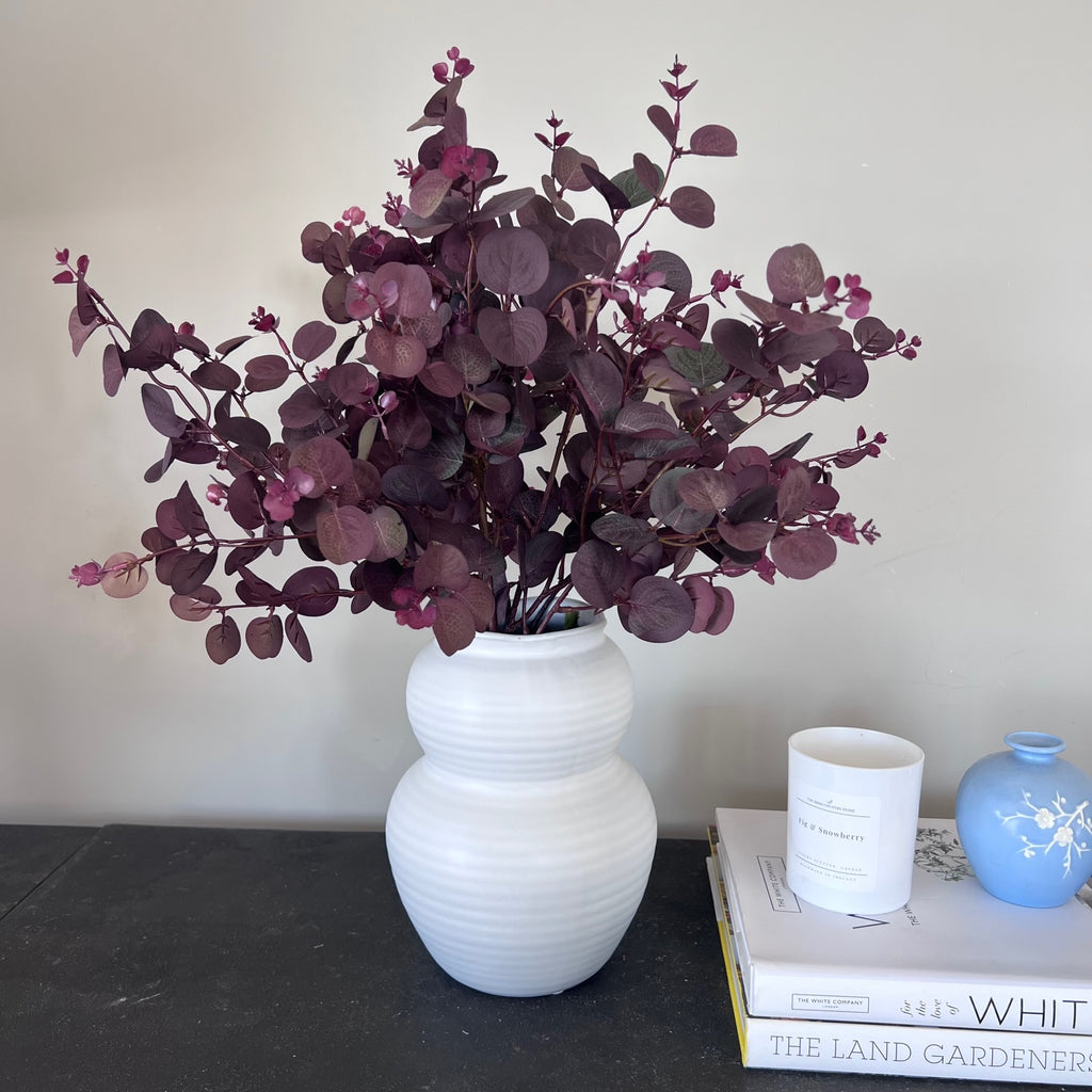 Our Faux Burgundy Eucalyptus Spray is perfect for adding a little depth and warmth to your arrangements. The rich, dusky tones feel lovely and autumnal, but it’s one of those stems that works beautifully all year round. Style a few on their own in a textured vase for something simple, or mix them into your favourite bouquet to ground softer tones.