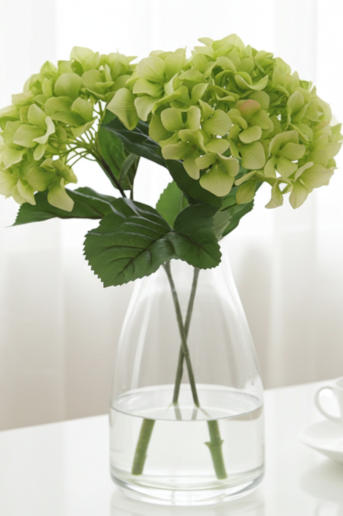 Our Faux green Hydrangea Macrophylla Stem is full, fluffy, and beautifully detailed—such a lovely classic to have on hand. The soft white petals are perfect for creating a clean, fresh look that works with just about anything.