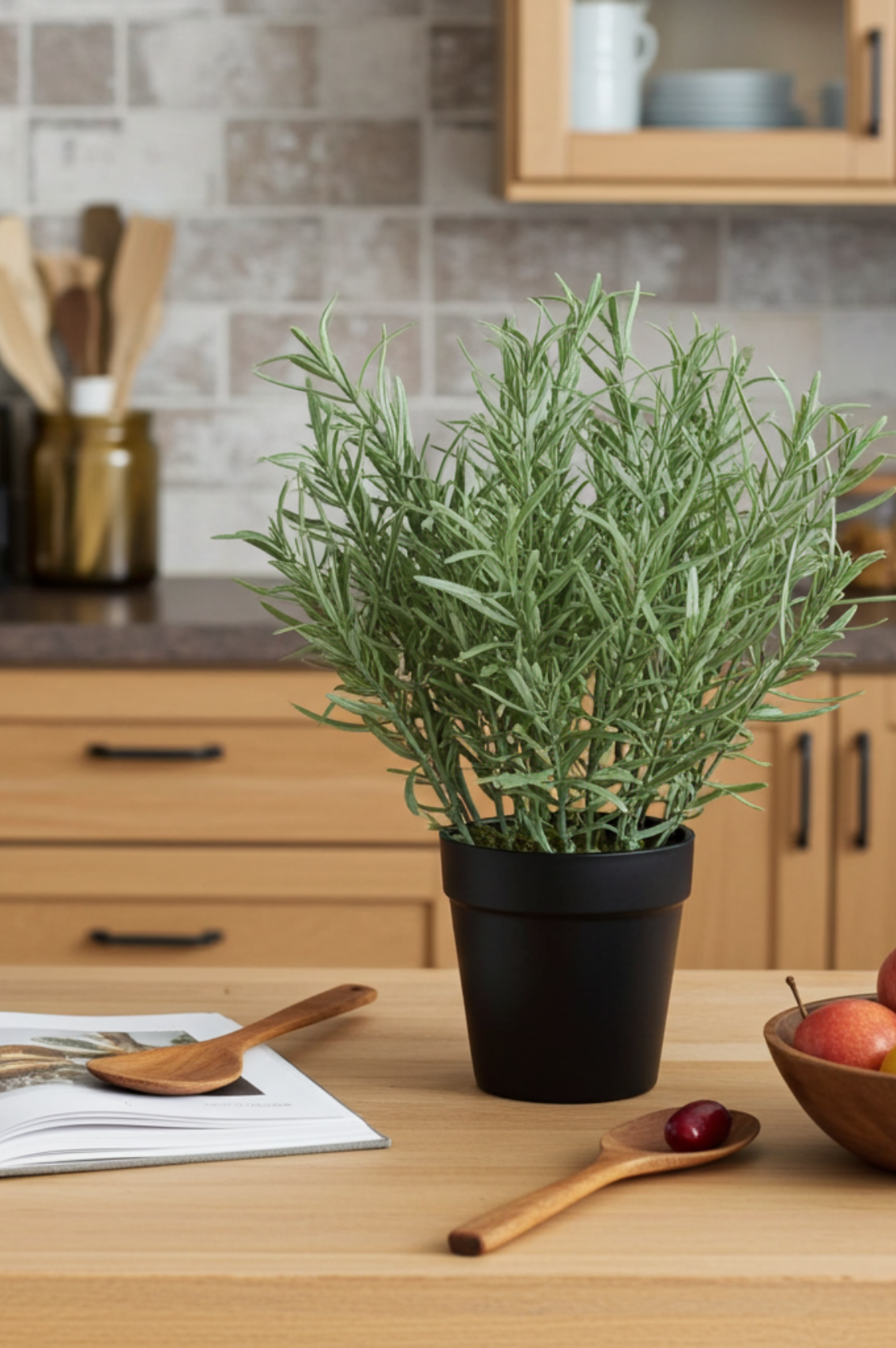 Sometimes caring for real herbs becomes a chore. Enter faux herbs! They will fill the space and look truly authentic giving you the look and feel of a cooks kitchen, but without the maintenance. Fresh, green, and wonderfully lifelike, our Faux Rosemary Plant brings that relaxed, from-the-garden feel into your home — without the upkeep.
