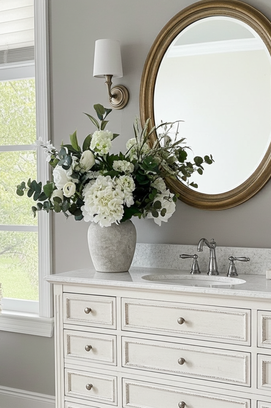 Style it in a tall ceramic or glass vase for a clean, classic look on your hallway console or dining table. For a more relaxed feel, pair it with textured stoneware and soft neutral accents on a sideboard or kitchen island. Its versatile white and green palette works beautifully in both modern and traditional spaces.