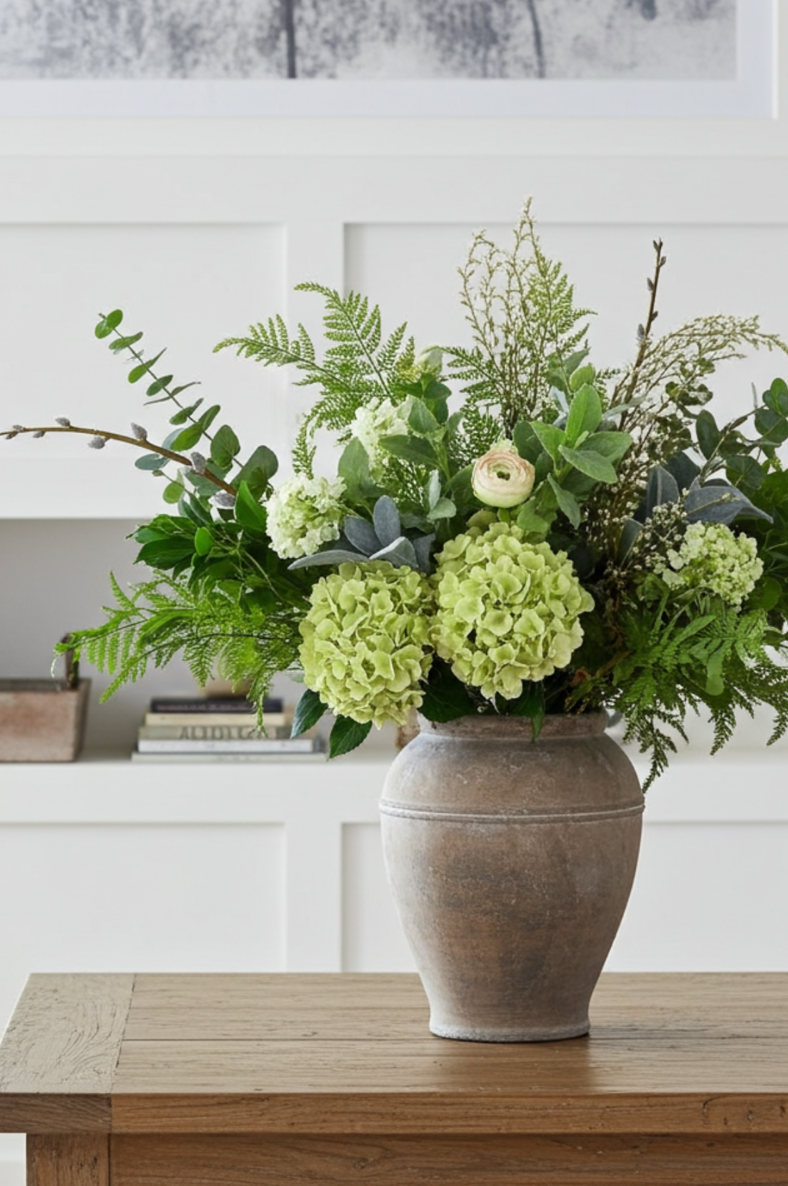 Our Faux Foraged Greens Arrangement is all about that relaxed, just-gathered feel. It’s full of lush greenery with lovely shape and texture—perfect if you love something simple, earthy, and easy to style.