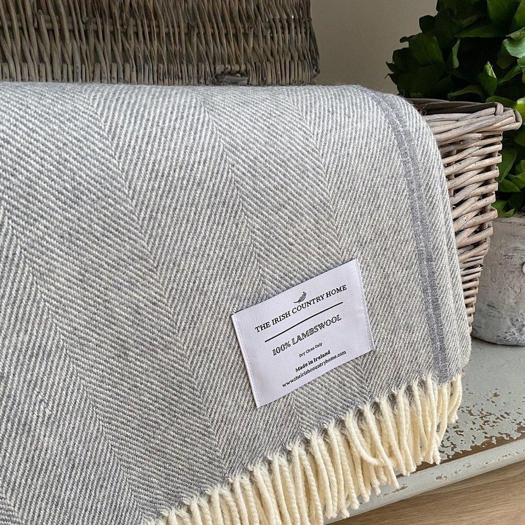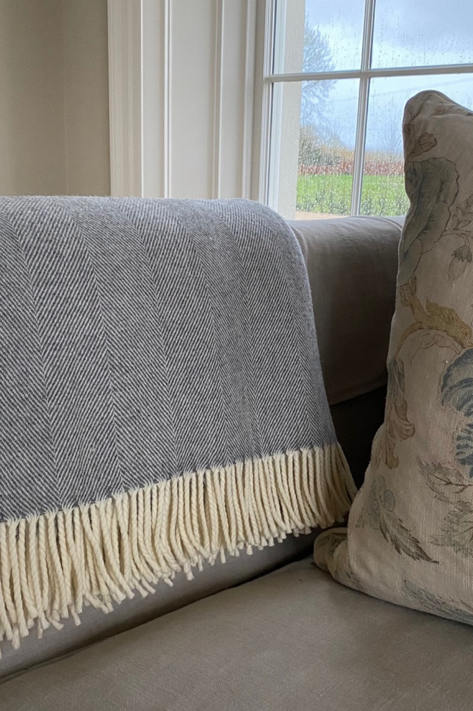 Luxury Supersoft Herringbone Lambswool Throw Grey